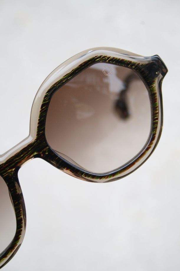 PHTOBYA è una visione scolpita nella materia: montature realizzate in pregiato acetato giapponese da 16 mm, lavorato dal pieno per dare forma a volumi densi e vibranti, come piccole sculture da indossare. Ogni componente è il risultato di un progetto attento e personale: le cerniere, disegnate su misura, e le anime interne, galvanizzate in oro 24 kt, raccontano una cura quasi rituale per il dettaglio, pensata per accompagnare la quotidianità con autenticità e carattere.